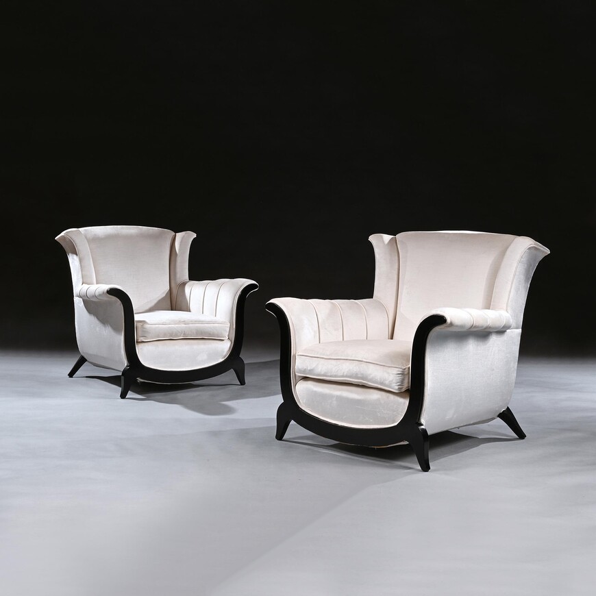 Moving in to the 20 th century, we have a pair of Art Deco period French armchairs in an ebonised finish with luxurious, comfortable proportions.