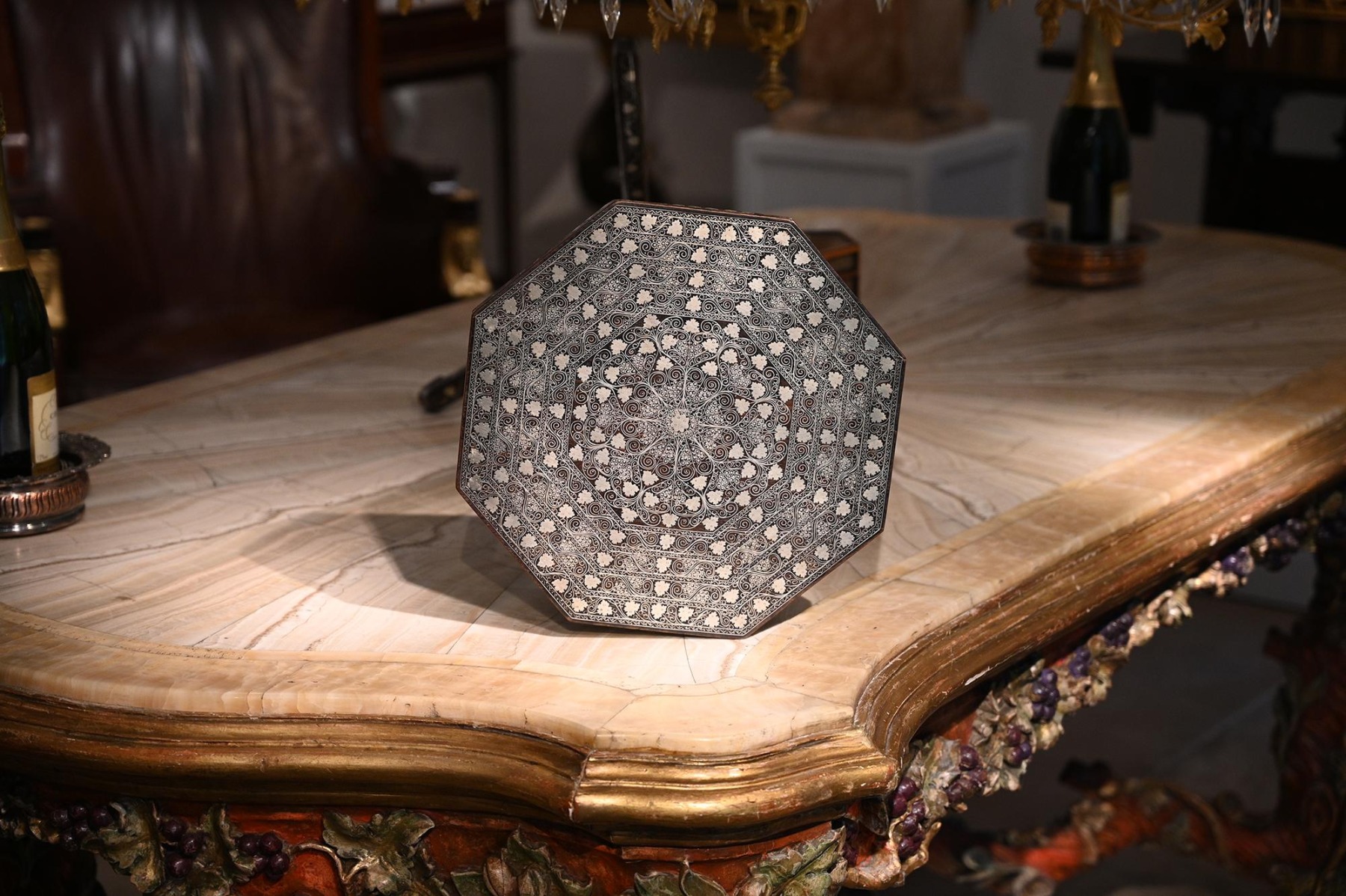 An Extremely Fine Ottoman Silver Inlaid Coffee Table Vortik Potikian #2923