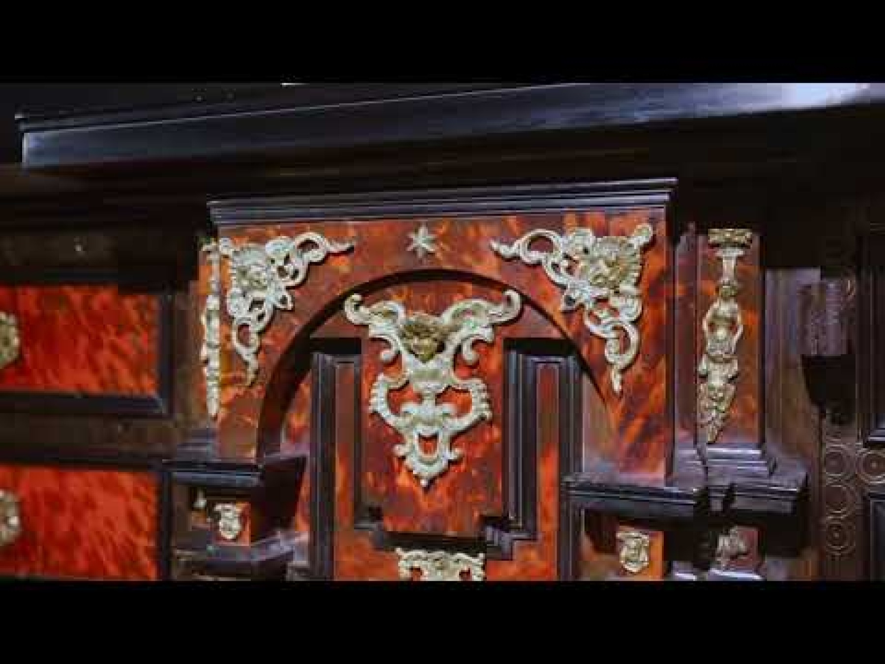 The cabinet on stand with all its many variations became fashionable throughout Europe from the early 16 century. The design of these cabinets, with their rich ormolu mounts and tortoiseshell veneers set in an ebony frame, is typical of the work being produced not only in Spain but elsewhere in the Spanish empire at Naples and Antwerp during the 17th Century. This design of cabinet came to favour in Spain in the mid-17th century with the steady flow of fashions and ÈmigrÈ craftsmen from Germany and the low countries, and gradually superseded the earlier and more specifically Spanish form of cabinet on stand the vargueno.