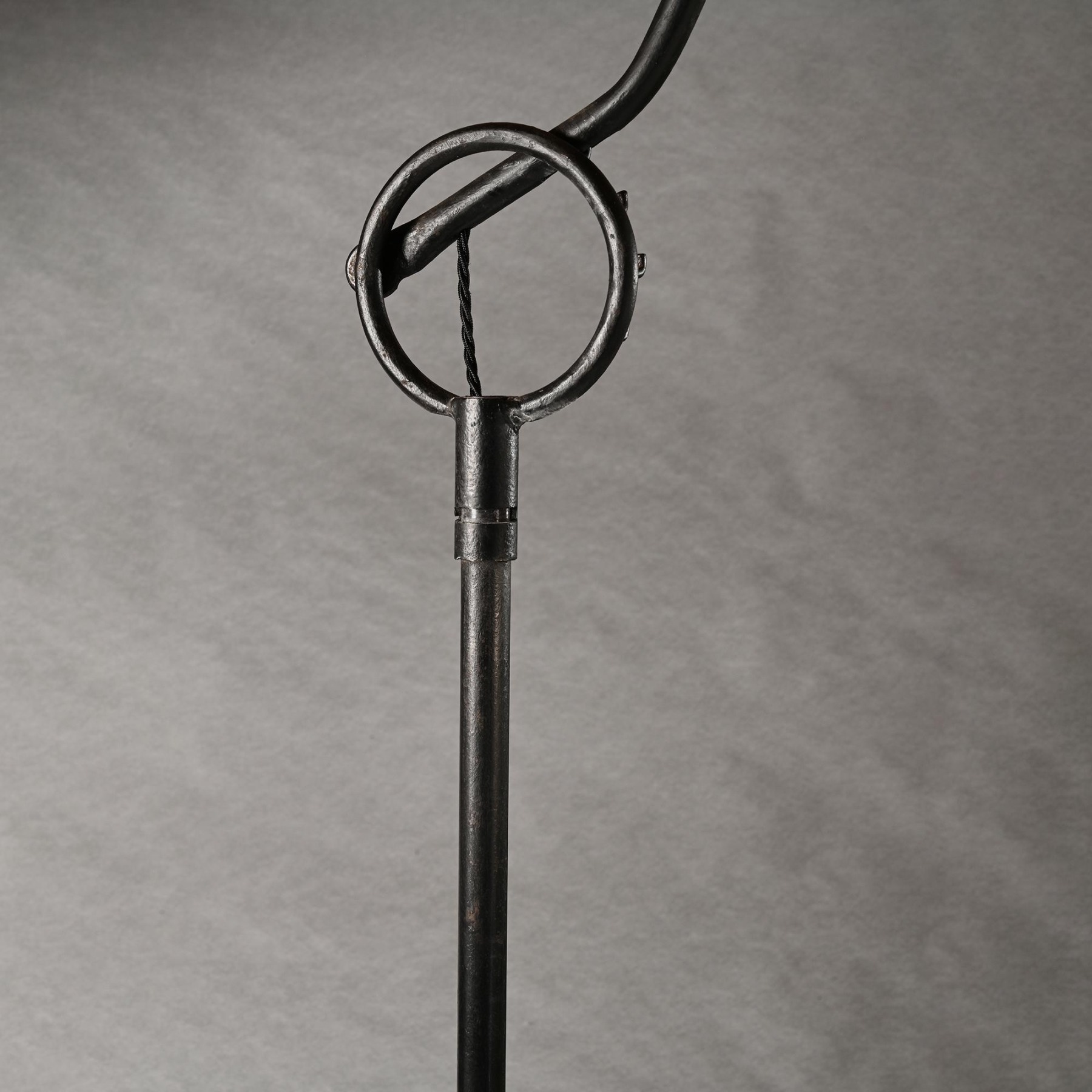 Mid 20th Century Wrought Iron Floor Lamp with Rotating Head in the Style of Jean Royere